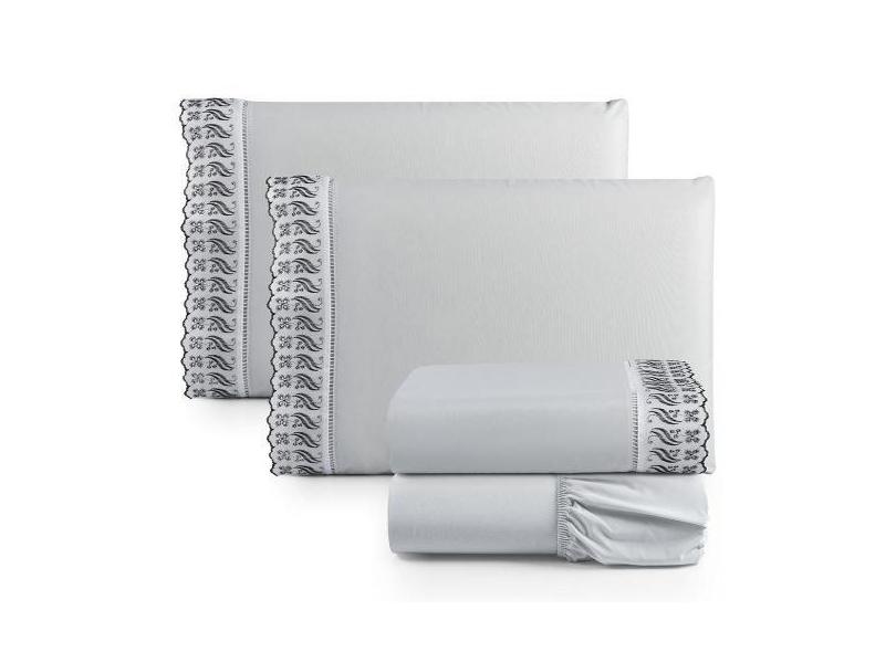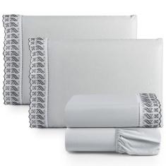 O menor preço encontrado no Brasil para Jogo Lençol Casal Suave Barrado Lese 4 Peças Barato - Cinza - Casa Sho atualmente é R$ 162,78.