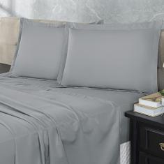 Jogo Lençol Elastico 300 Fios Queen 4 Peças Hotel Cinza