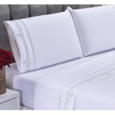 Jogo lençol Imperial quarto casal padrão bordado 4 peças 2fronha - Sho