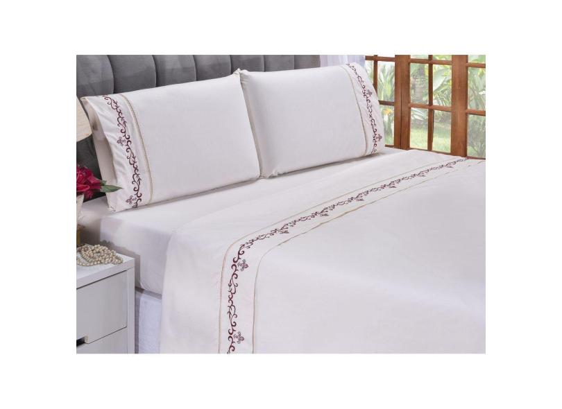 Jogo lençol Imperial quarto casal padrão bordado 4 peças 2fronha