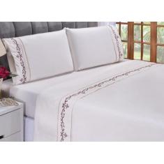 Jogo lençol Imperial quarto casal Queen bordado 4 peças 2fronha - Shop