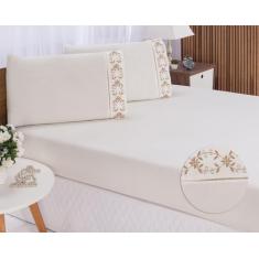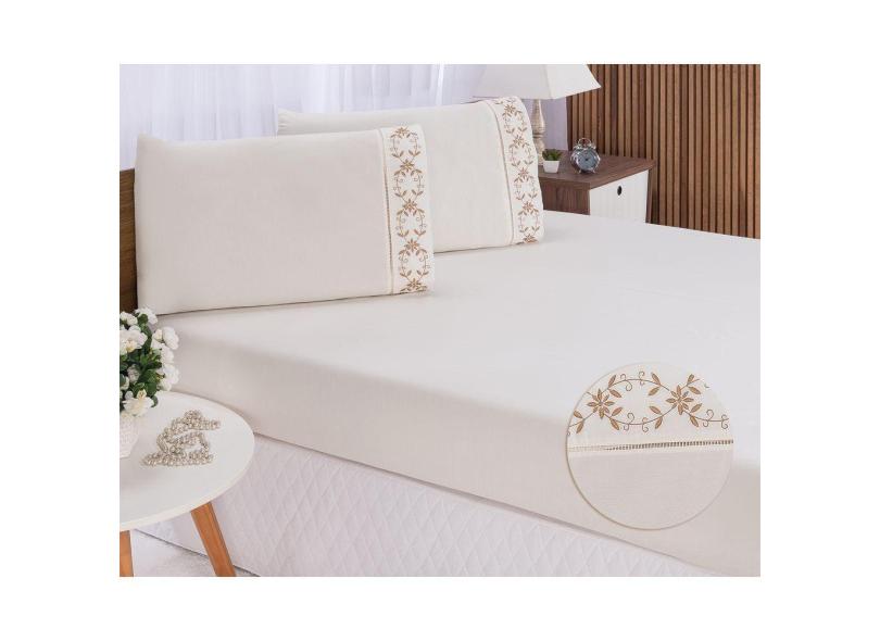 Jogo lençol king casal bordado 3 peças Palha caqui veneza
