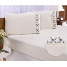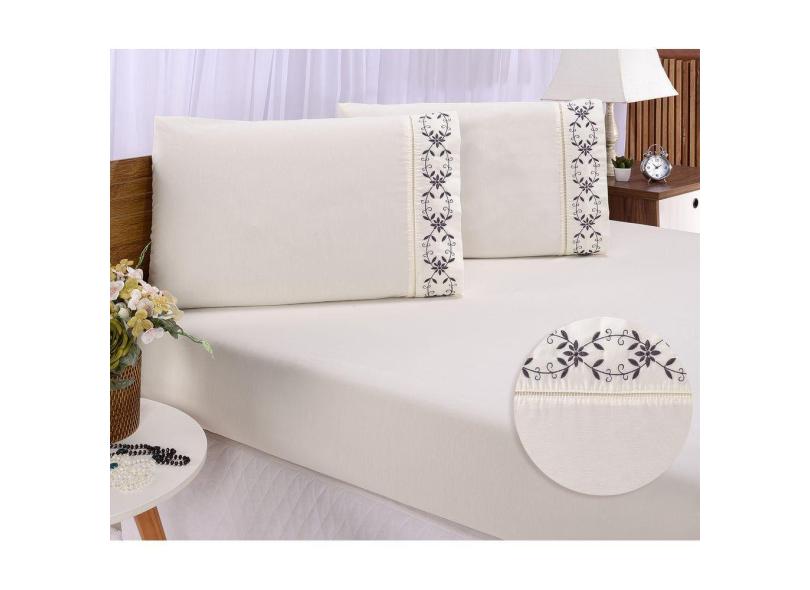 Jogo lençol king casal bordado 3peças Palha cinza veneza