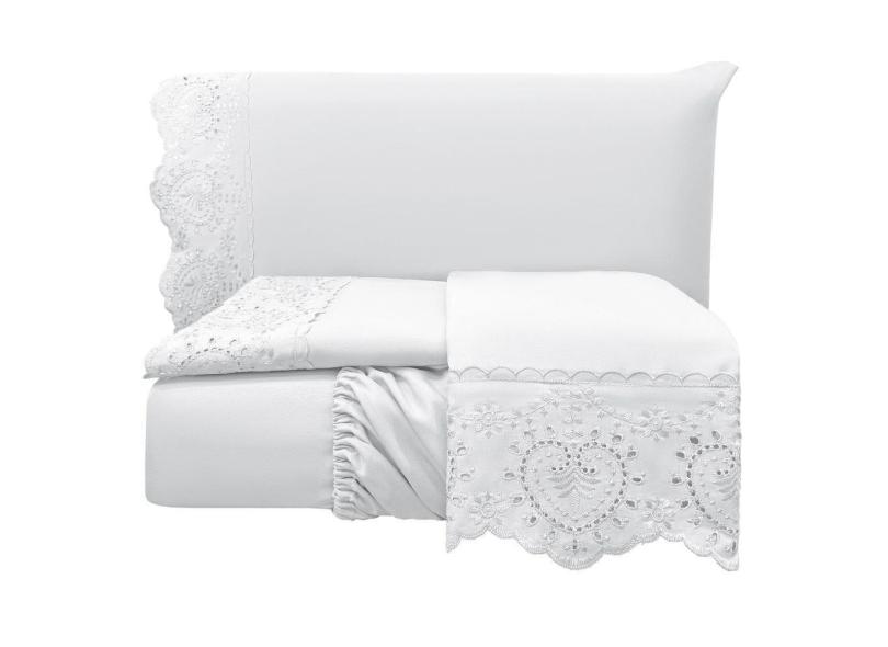 O menor preço encontrado no Brasil para Jogo Lençol King Passione Bordado Inglês 4 pç Branco atualmente é R$ 244,53.
