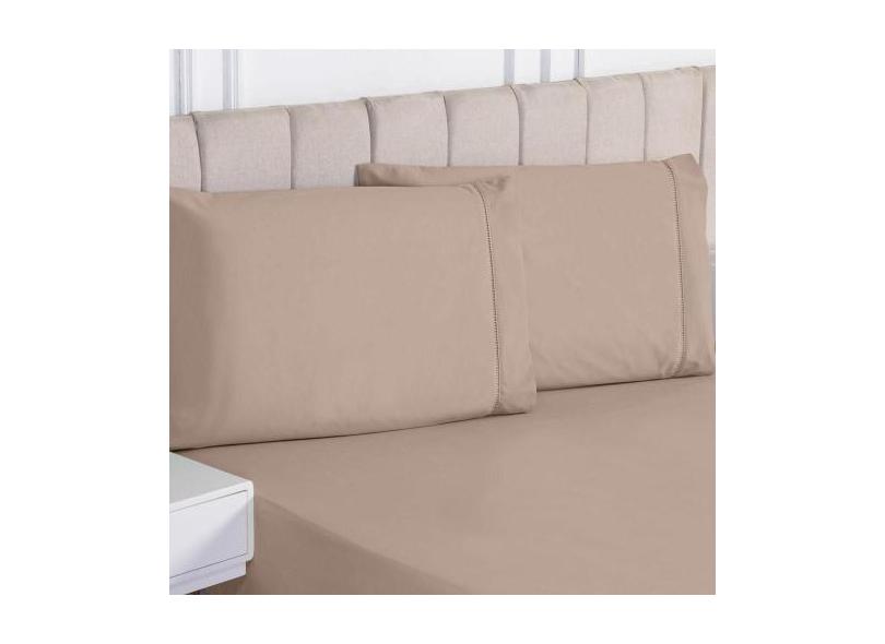 Jogo Lençol Liso Queen 3 Peças 180 Fios 100% Algodão - Caqui - Sucadu
