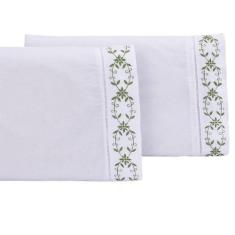 Jogo lençol Padrão casal bordado 3 peças branco Verde veneza