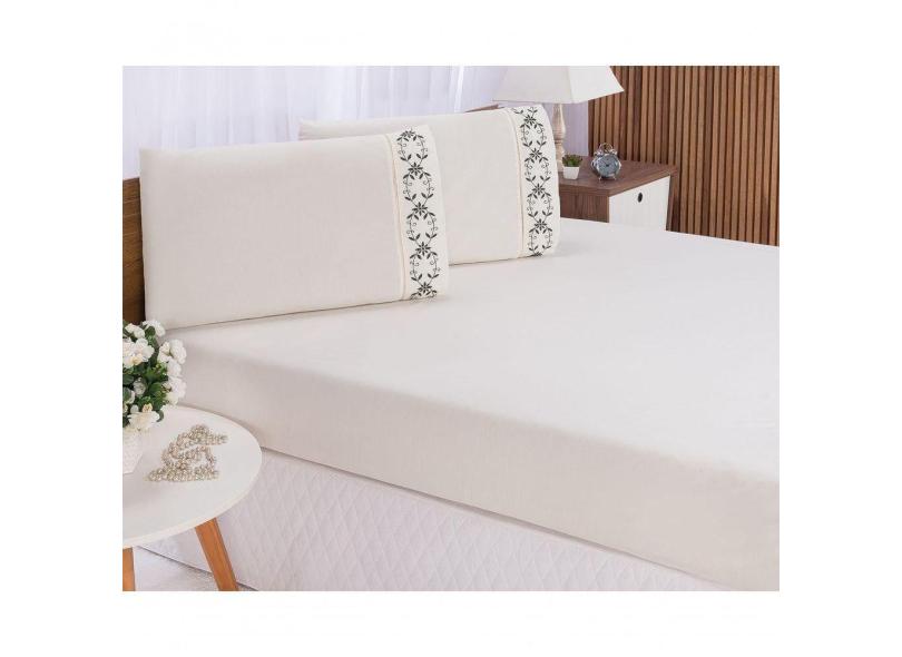 Jogo Lençol Padrão Casal Bordado 3peças Palha Verde Veneza