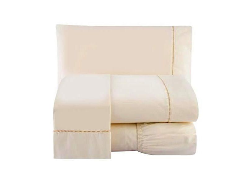 Jogo Lençol Percal 200 Fios Ponto Palito Cama Casal 4pçs Palha