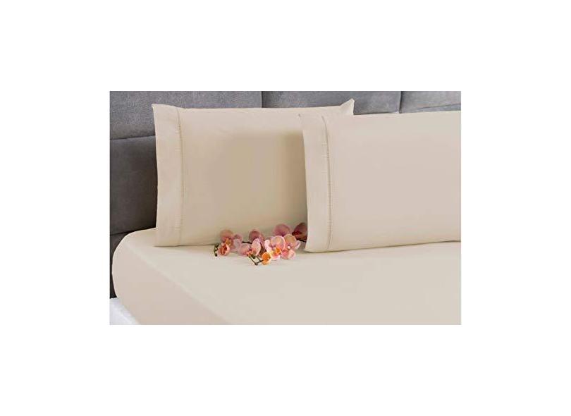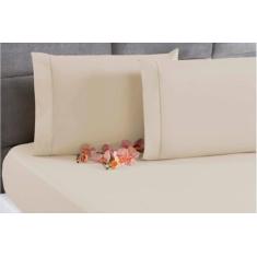 Jogo Lençol Percal 200 Fios Ponto Palito Cama Queen 3pçs Palha