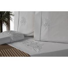 Jogo Lençol Queen Bordado Crivo 4 Peças 100% Algodão - Ingrid Bordados