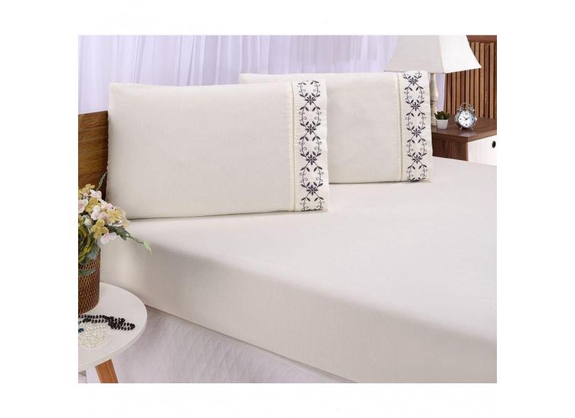Jogo Lençol Queen Casal Bordado 3peças Palha Cinza Veneza