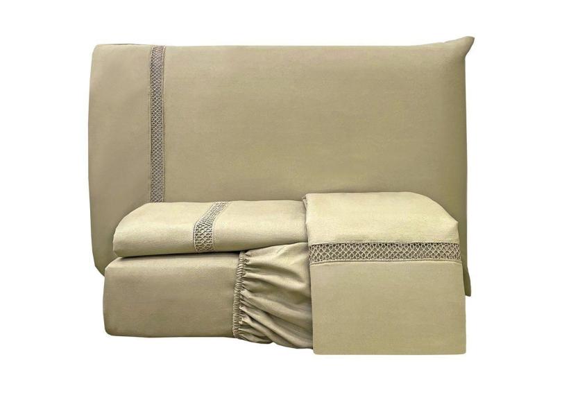 Jogo Lençol Queen Lenny Guipir 4 Pçs Caqui