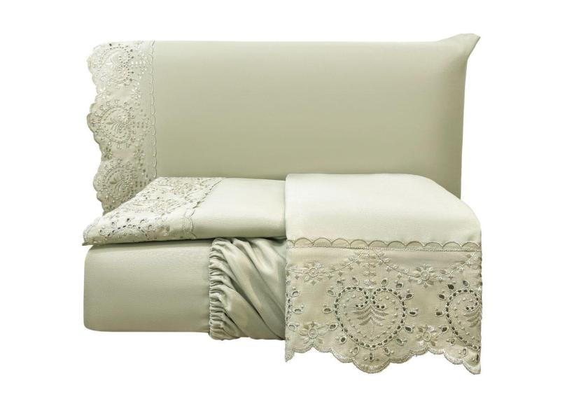 Jogo Lençol Queen Passione Bordado Inglês 4 pçs Bege