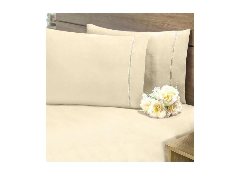 Jogo Lençol Queen Size 3 Peças 100% Algodão 200 Fios Percal Caqui Cant