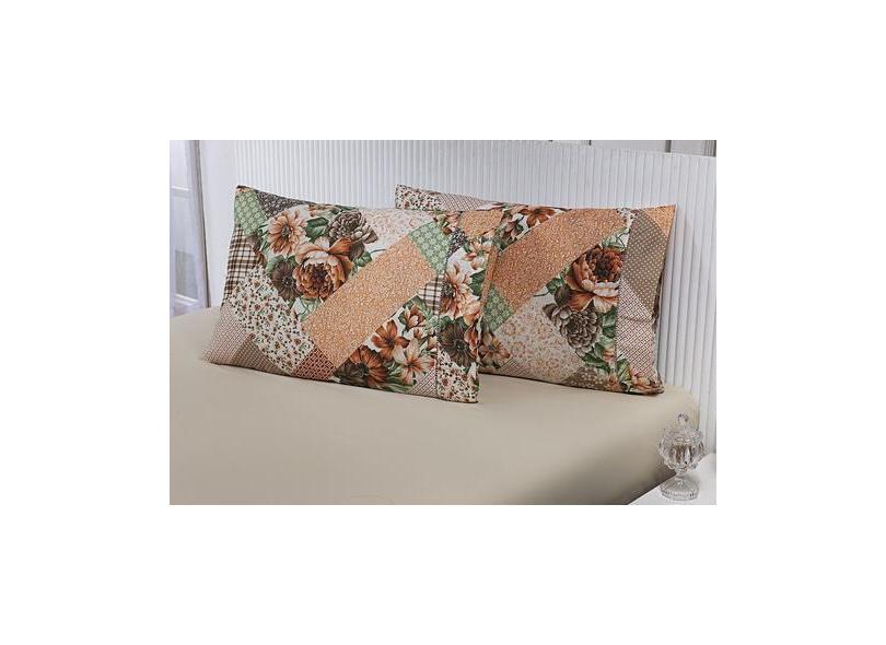 Jogo Lençol Solteiro 2 Peças (1,90x0,90x40cm) 180 Fios Patchwork Caqui