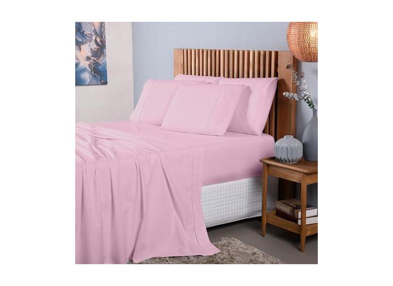 Jogo Lençol Solteiro 3 Peças 400 Fios 100% Algodão Premium (Rosa)