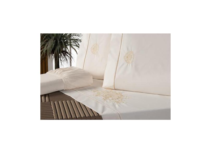 Jogo Lençol Solteiro Bordado Crivo c/ Ponto Palito Percal 100% Algodão