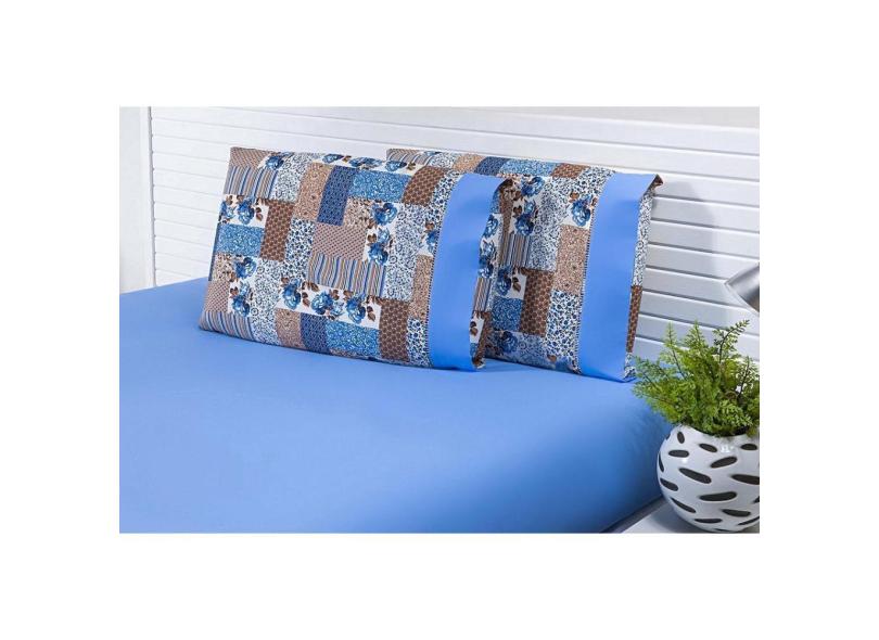 Jogo Lençol Solteiro King 2 Peças 180 Fios Patchwork Azul