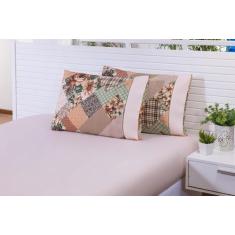 Jogo Lençol Solteiro King 2 Peças 180 Fios Patchwork Caqui - Mtr Enxov