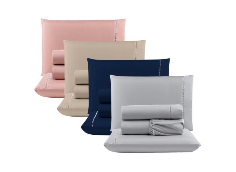 O menor preço encontrado no Brasil para Kit c/ 4 Jogos Cama Lençol Unique Casal Padrão Micro Percal 400 Fios Ponto Palito 4 Peças - Cinza + Azul + Avelã + Rosê atualmente é R$ 438,99.