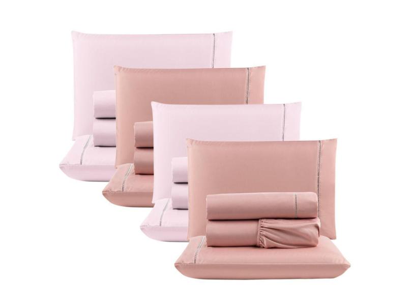 O menor preço encontrado no Brasil para Kit c/ 4 Jogos Cama Lençol Unique Casal Padrão Micro Percal 400 Fios Ponto Palito 4 Peças - Rosê + Rosa atualmente é R$ 438,99.