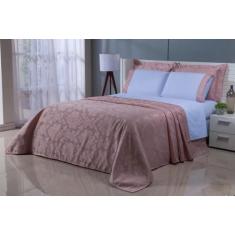 Kit Cobre Leito Jaquard Com Jogo De Lençol Viúva 7Peças Rose
