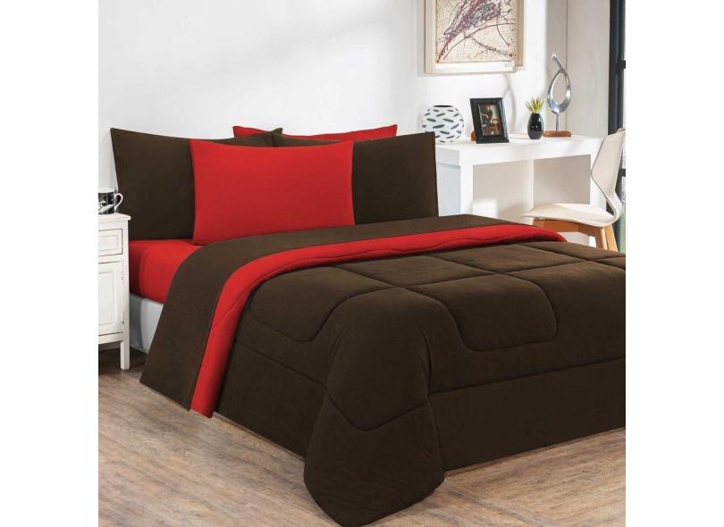 Kit Edredom + Jogo De Lençol 100% Algodão Gran Moratta 5 Peças Solteiro Marrom-vermelho