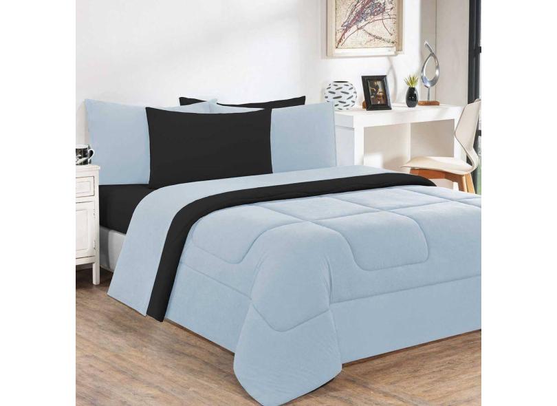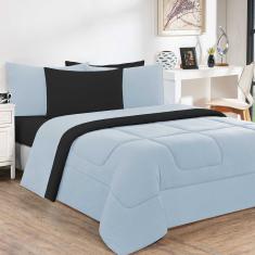 Kit Edredom + Jogo De Lençol Malha 100% Algodão Gran Moratta 4 Peças Solteiro - Azul Bebê-preto