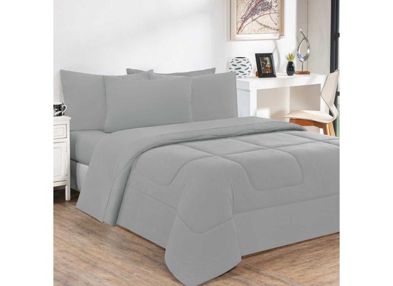 Kit Edredom + Jogo De Lençol Malha 100% Algodão Gran Moratta 6 Peças Casal - Cinza-cinza