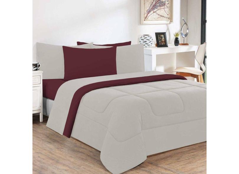 Kit Edredom + Jogo De Lençol Malha 100% Algodão Gran Moratta 6 Peças Casal - Palha -vinho