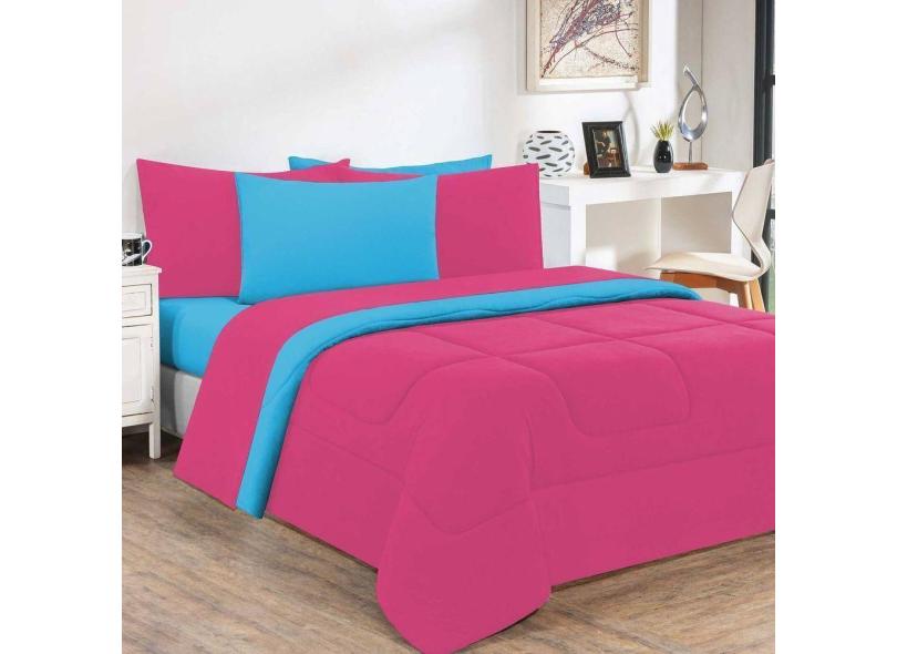 Kit Edredom + Jogo De Lençol Malha 100% Algodão Gran Moratta 6 Peças Casal - Pink -azul Turquesa