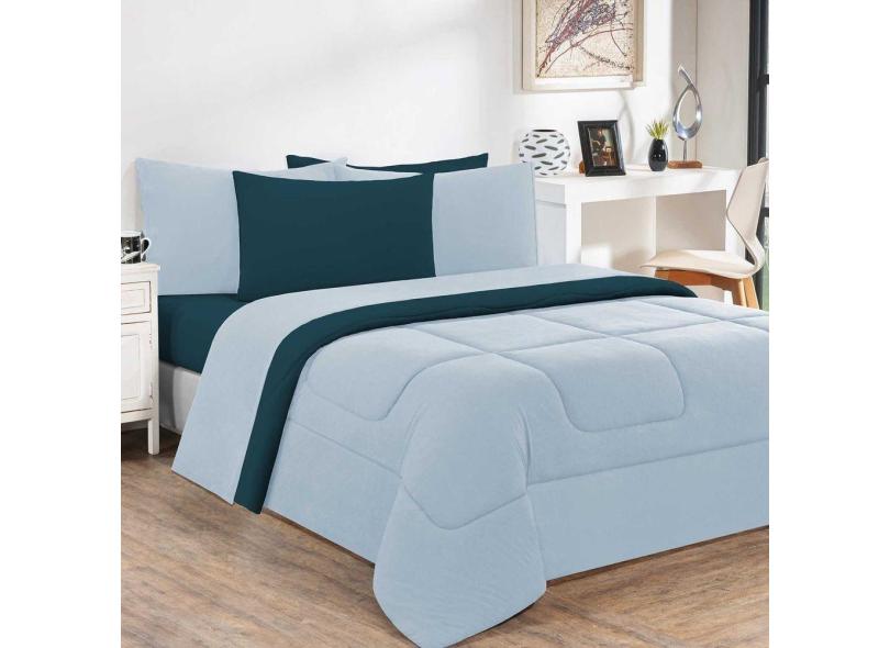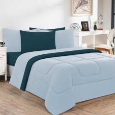 Kit Edredom + Jogo De Lençol Malha 100% Algodão Gran Moratta 6 Peças King - Azul Bebê-azul Petróleo