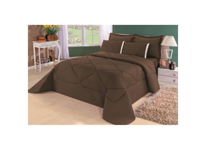 Kit Edredom + Lençol Dupla Face Casal Queen 6 Pç Marrom