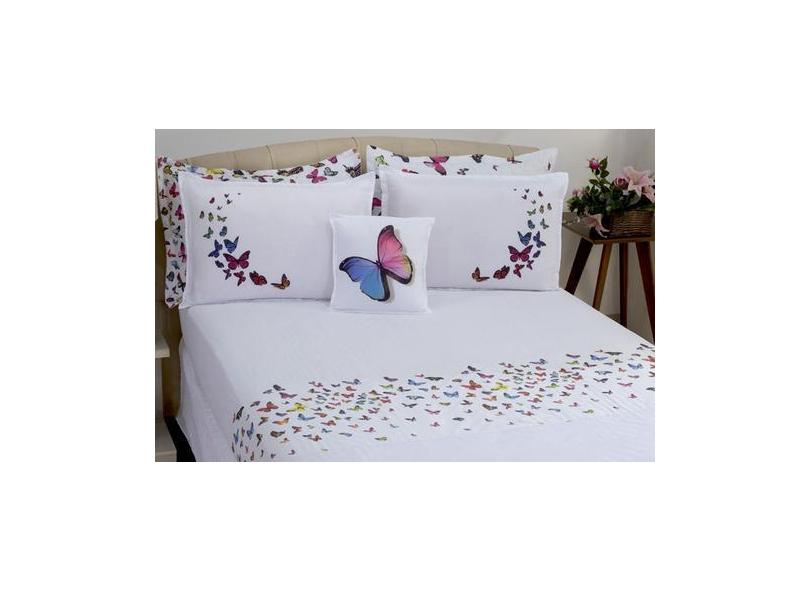 KIT Jogo de Lençol Borboletas Percal 180 Fios 04 Peças - Deccoralle, J