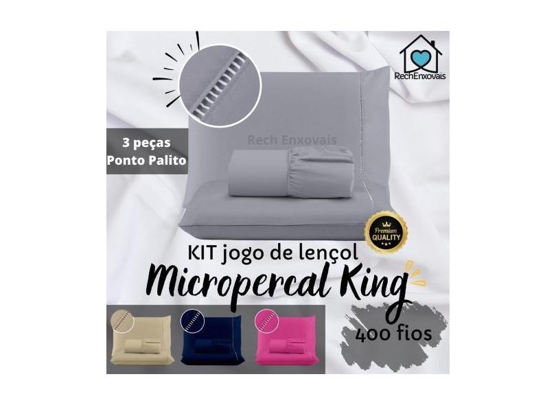 Kit Jogo de Lençol Micropercal 400 fios 3 Peças Ponto Palito - King -