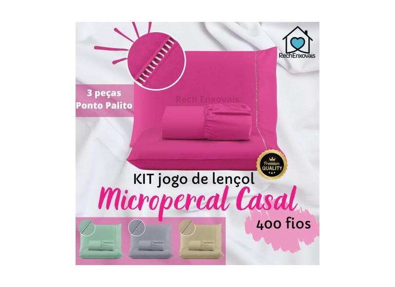 Kit Jogo de Lençol Micropercal 400 Fios Ponto Palito 03 Peças- Casal P