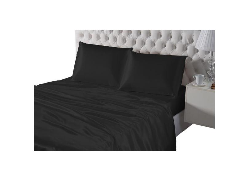 Kit Lençol De Seda 4 Peças Casal Padrão Preto Cetim