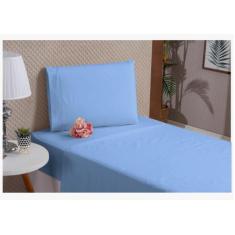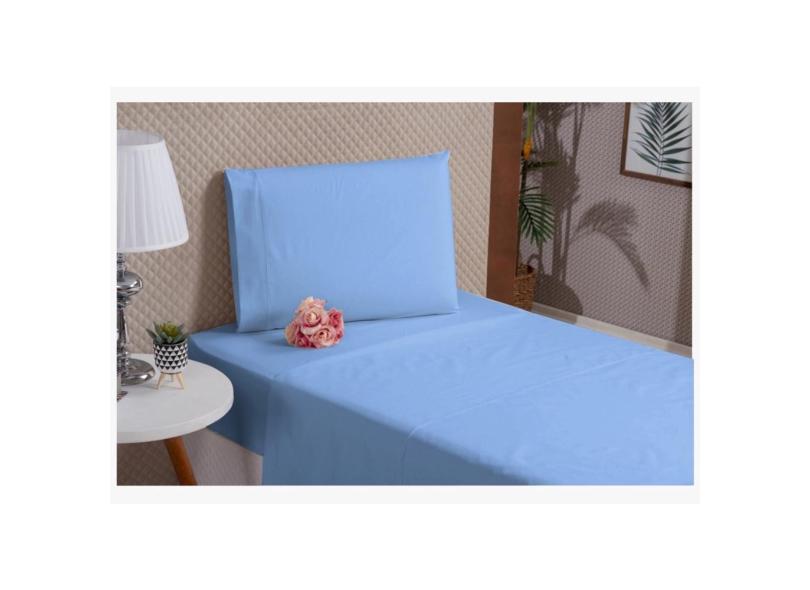 Kit Lençol Solteiro 3 Peças Algodão Percal 180 Fios Azul