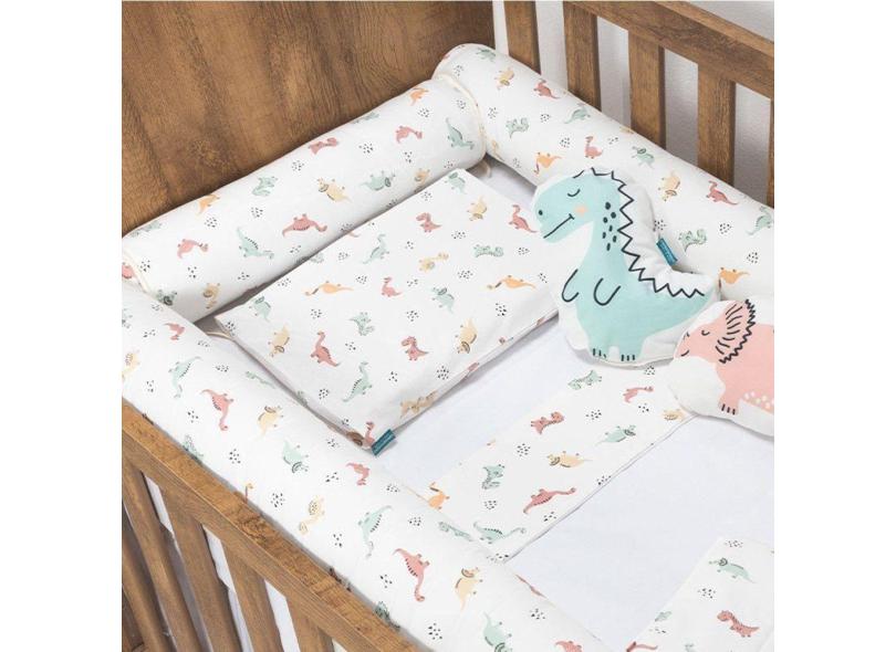 Kit Para Berço Jogo De Lençol Com Rolinhos 100% Algodão 7 Peças Dinossauros