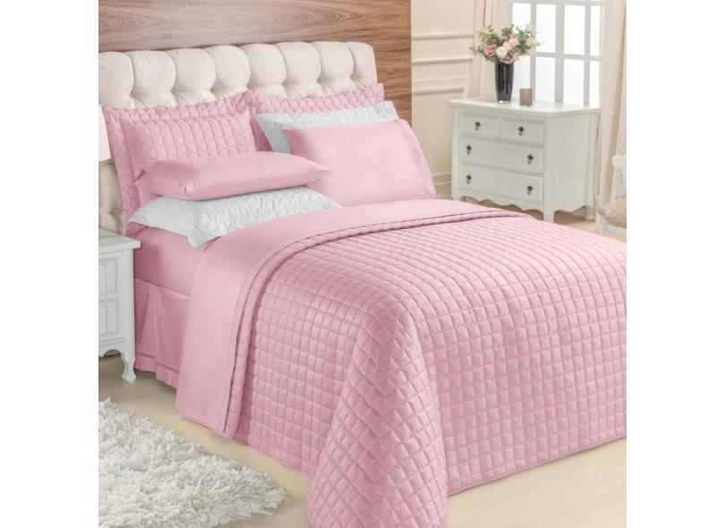 Kit Top Line Cobre Leito Queen 180 Fios + Jogo De Lençol - 7 Peças Rose