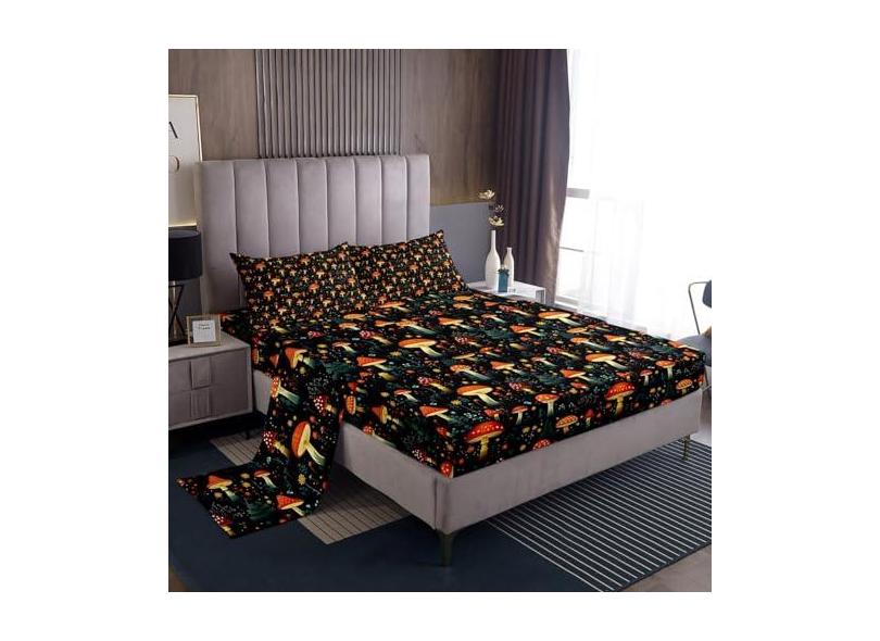 Lençóis de cama de cogumelo com desenho de plantas selvagens da selva sonhador, conjunto de cama rústico para crianças, adolescentes, adultos, aquarela, hippie, margarida, gradiente, folhas verdes,