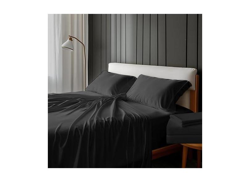 Lençóis Queen │ 100% viscose derivada de bambu │ Lençol de elástico ultramacio com 4 tiras elásticas │ Bolso profundo de 45,7 cm │ Refrigerante para quem dorme quente
