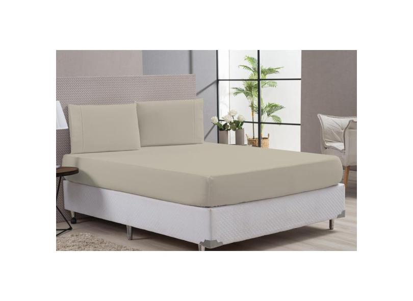 Lençol 180 Fios 80% Algodão Cáqui 3 Peças Casal Padrão