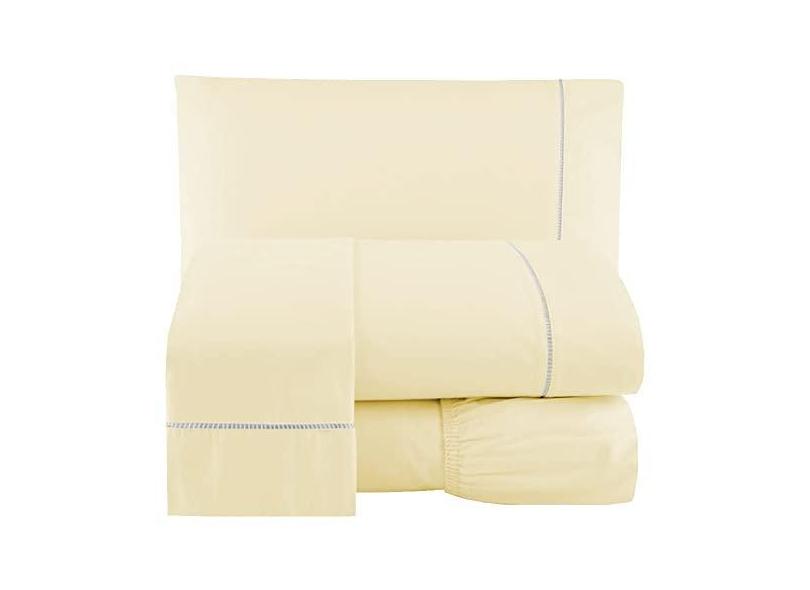 O menor preço encontrado no Brasil para Lençol 3 Peças King 400 Fios Bege Toque Suave Ponto Palito Casa Dona atualmente é R$ 130,14.