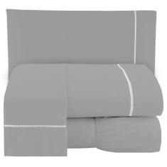 Lençol 4 Peças King 400 Fios Prata Toque Suave Ponto Palito Casa Dona