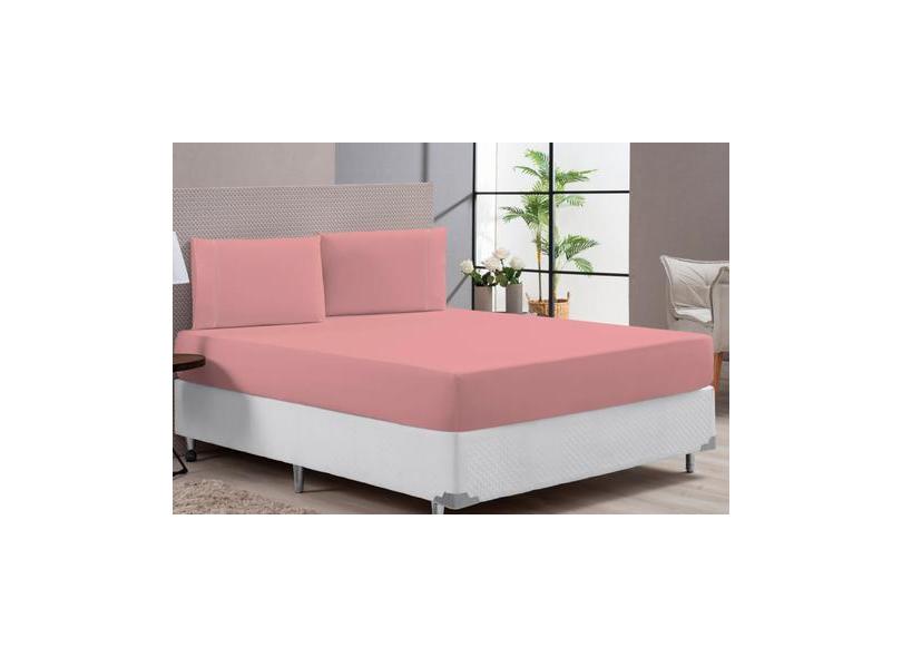 Lençol 400 Fios Casal King 100% Poliéster Ponto Palito 3 Peças - Bruc
