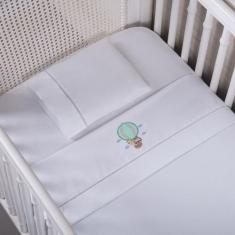 Lençol Berço Americano Ponto Palito Percal 200 Fios 3 Peças Bordado Sa