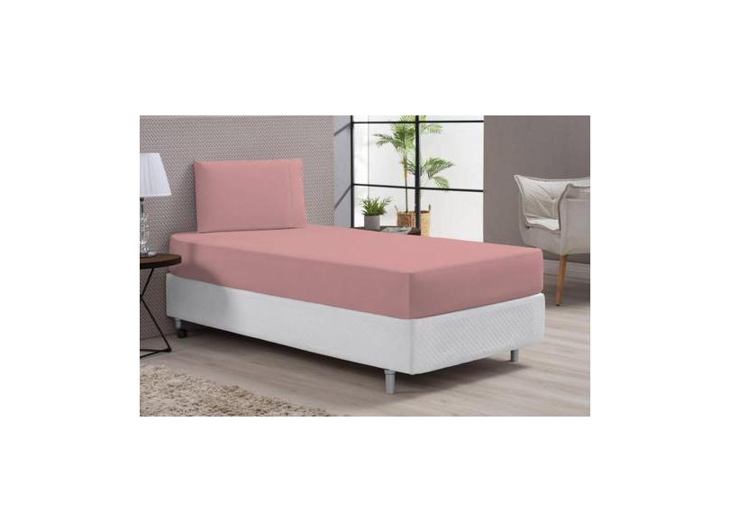 Lençol Cama Solteiro Cor Rosê Macio E Confortável 400 Fios - Beatriz E