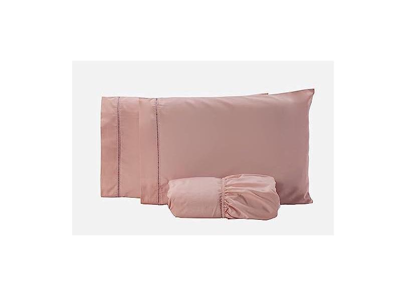 Lençol Casal 3 pçs 200 fios 100% algodão fronha ponto palito Salmão