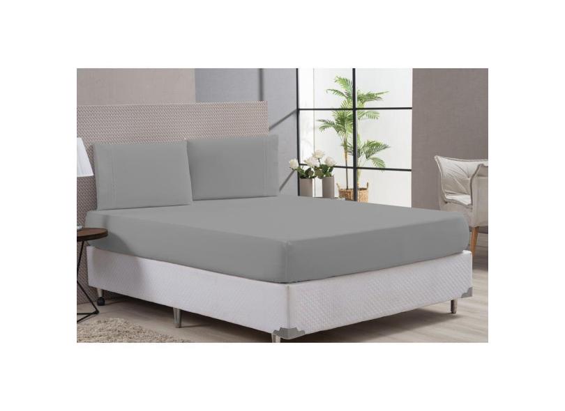 Lençol Casal Algodão 3 Peças Cinza Hotel Hospedaria